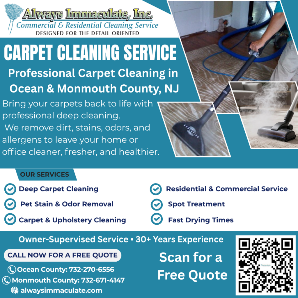 Always Immaculate Inc. provides professional carpet cleaning services throughout Ocean County and Monmouth County, NJ.
